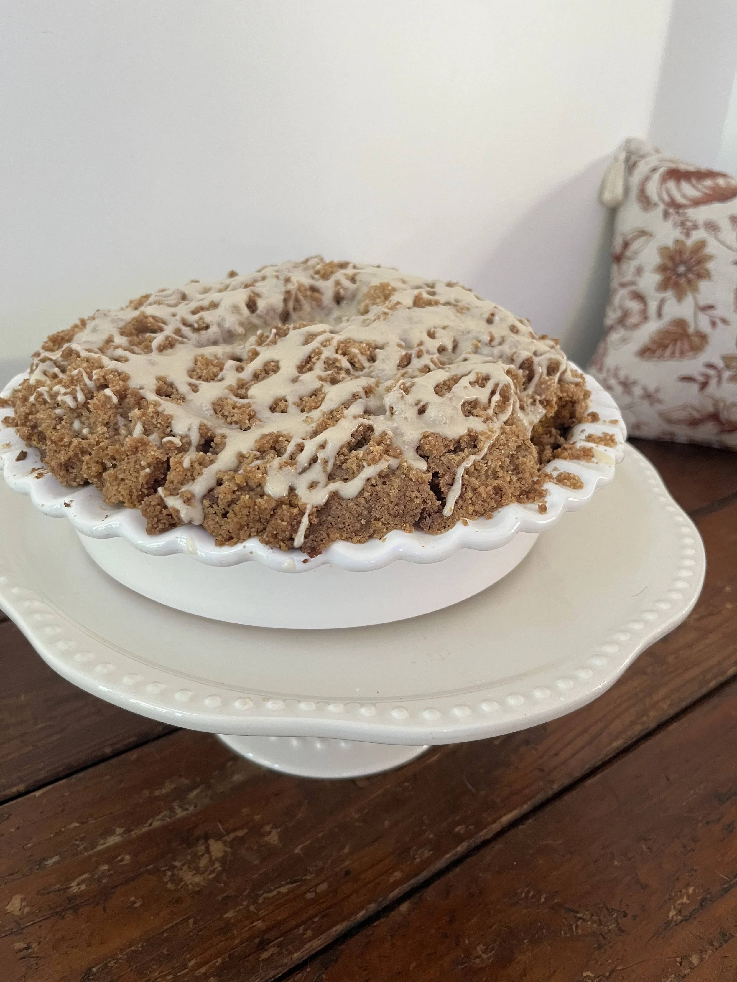 In a medium bowl, combine the flour, brown sugar, and cinnamon. Add the softened butter and use your hands to work it in until the mixture forms a crumbly streusel topping.Assemble the Cake
